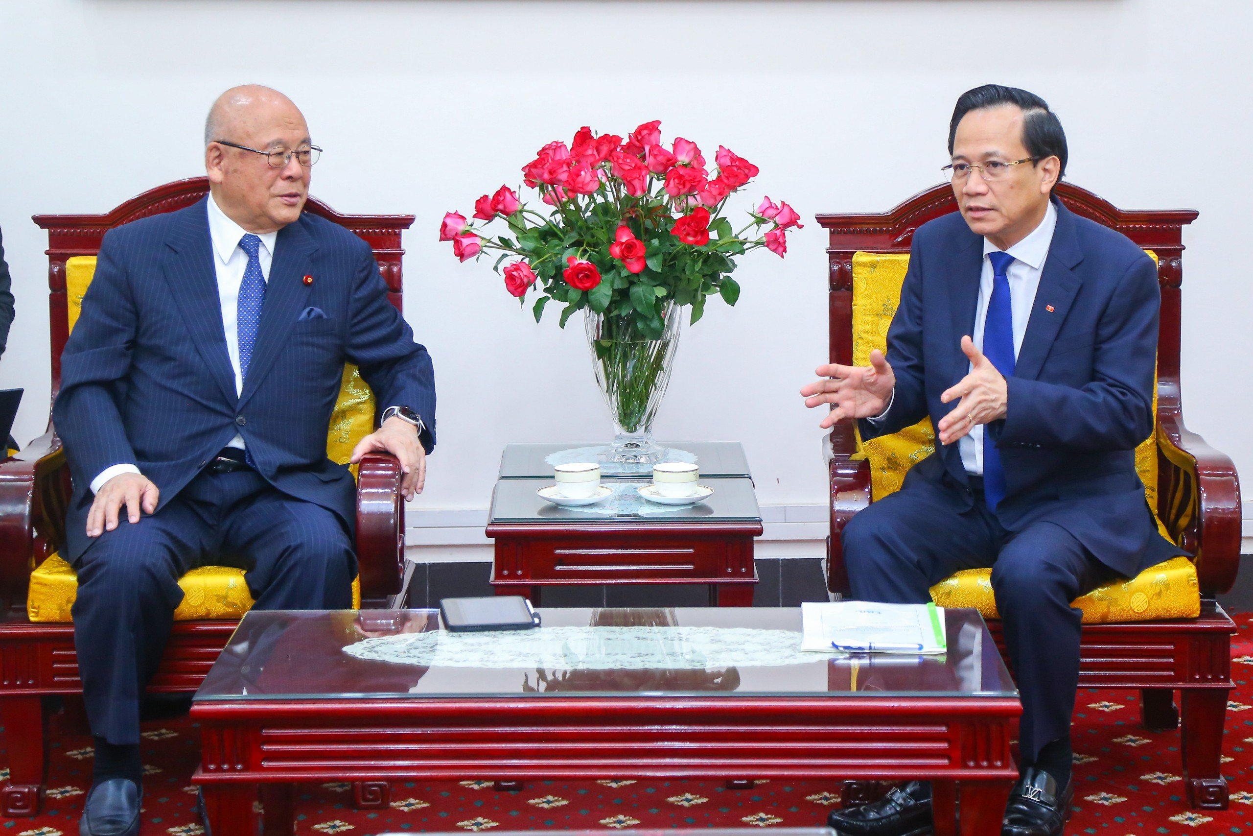 Bộ trưởng Đào Ngọc Dung làm việc với ông Takebe Tsutomu, Chủ tịch Hiệp hội toàn quốc của Nhật Bản về hỗ trợ cùng phát triển nhân lực nước ngoài